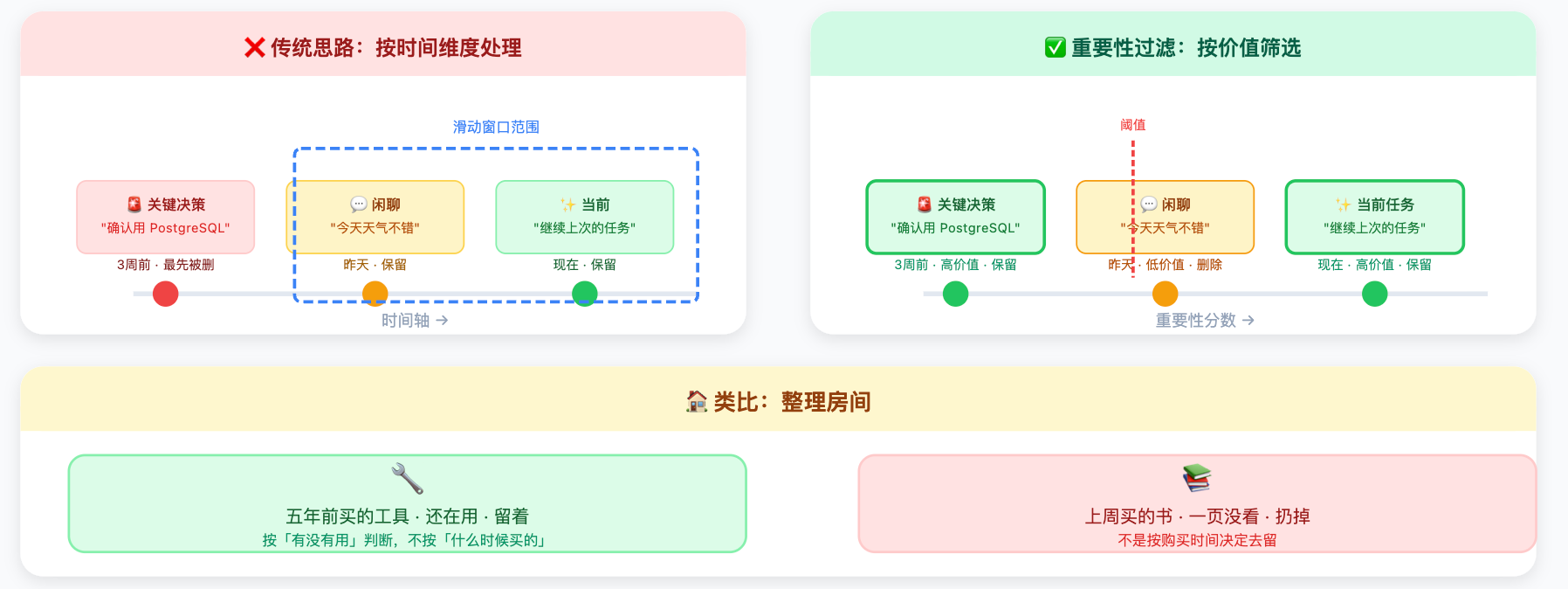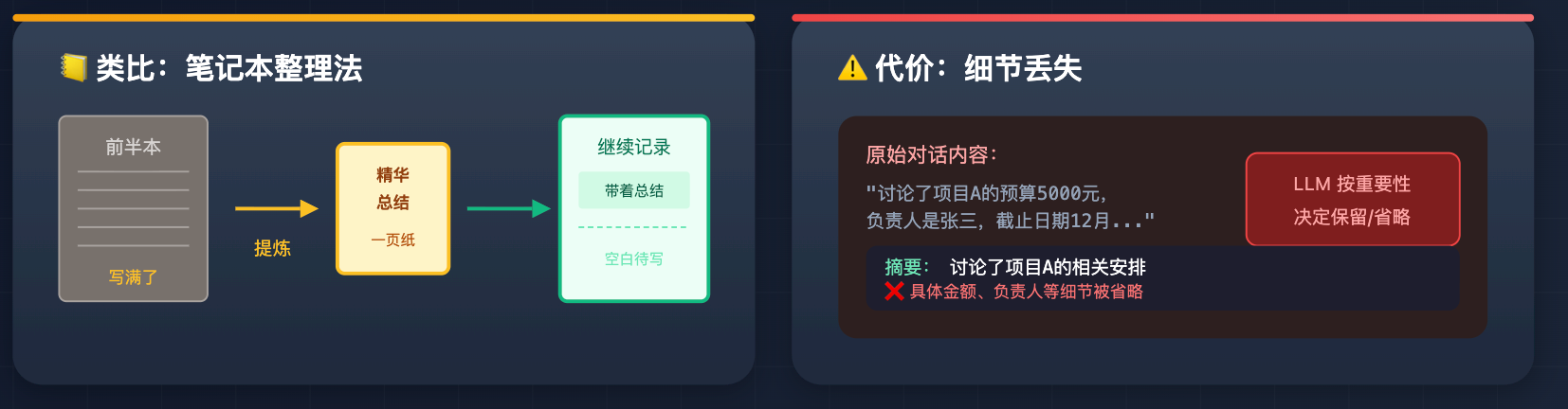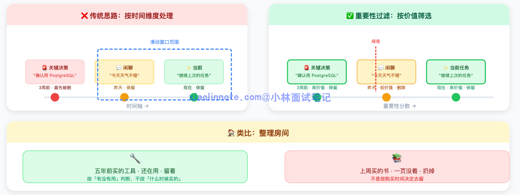 第二件:记忆机制。传统 LLM 每次对话都是「失忆」的,除非你手动传上下文,不然它完全不记得上一次说了什么。而 Agent 系统通常会设计短期记忆(当前任务的中间状态)和长期记忆(跨任务的用户偏好、历史操作记录),这让它在执行复杂任务时能保持连贯性,不会做到一半忘了目标是什么。