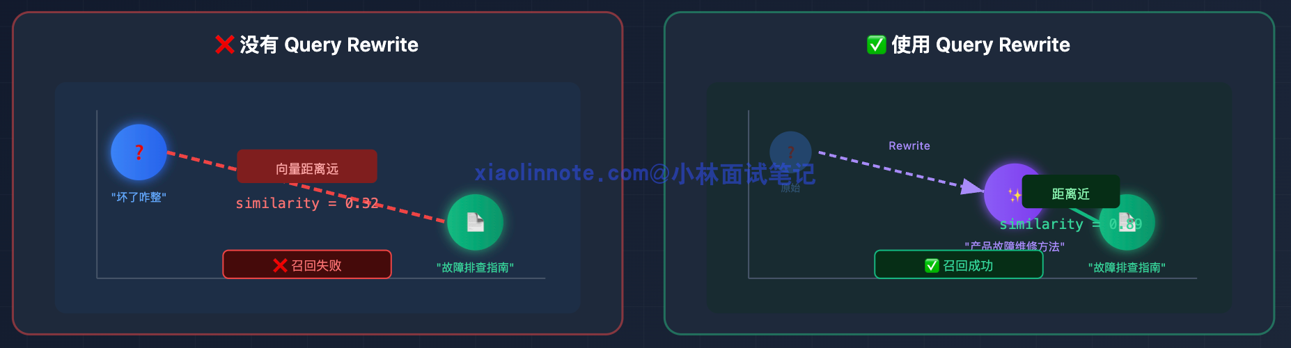 👔面试官:那用户问「这个功能怎么用」,知识库里写的是「XX 模块操作指南」,你光改写成书面语就能命中了?如果改写之后还是对不上呢?
