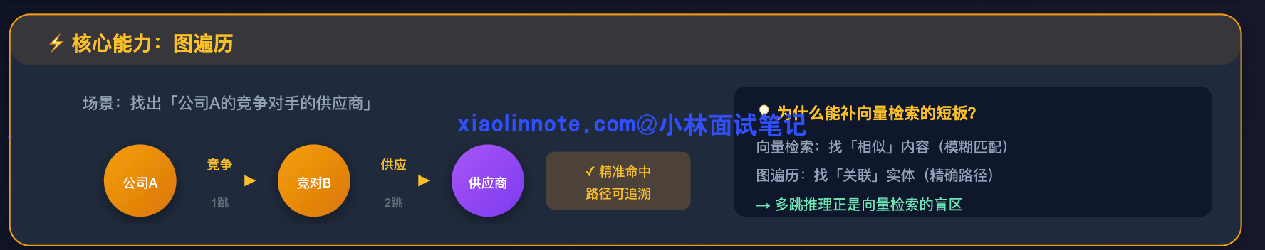 👔面试官:向量检索只能做单跳检索,找不到多个实体之间的关联关系。用户问「A 公司的投资方和 B 公司有什么交集」,你用向量检索试试看?
